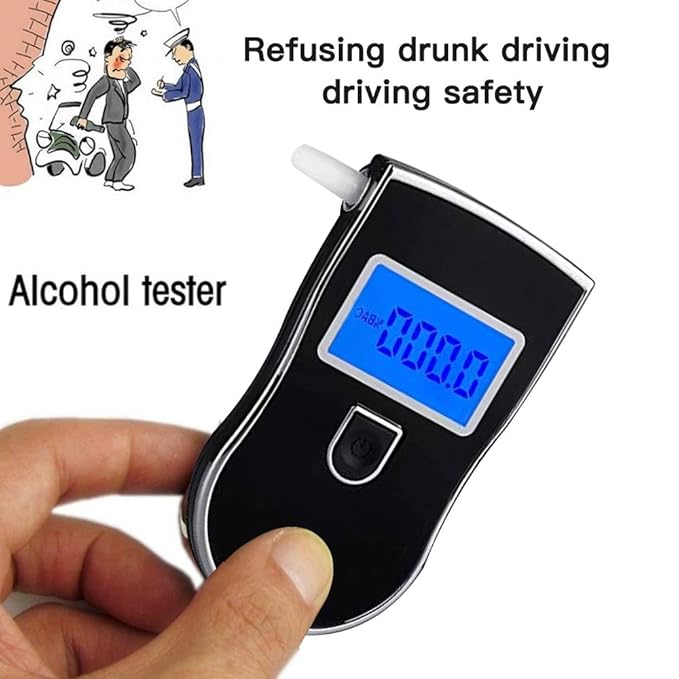 Alcohol Tester – Compact & Light weight Alcohol detector with 3 Digits LCD Display, light blue backup.