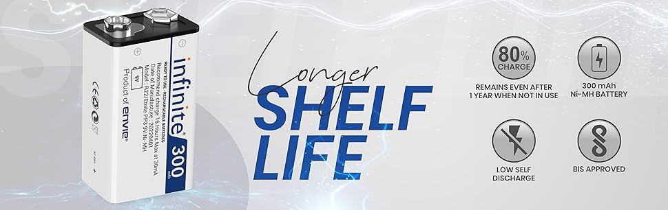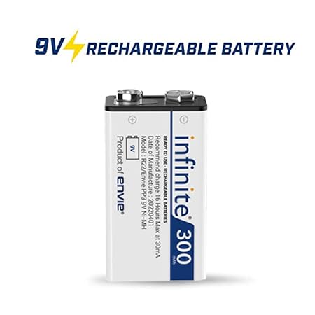 - Versatile rechargeable battery: The ENVIE (9VENVIE) Infinite Ni-MH 300mAh Rechargeable Battery is designed to fit devices that require a PP3 size battery, offering versatility in usage.