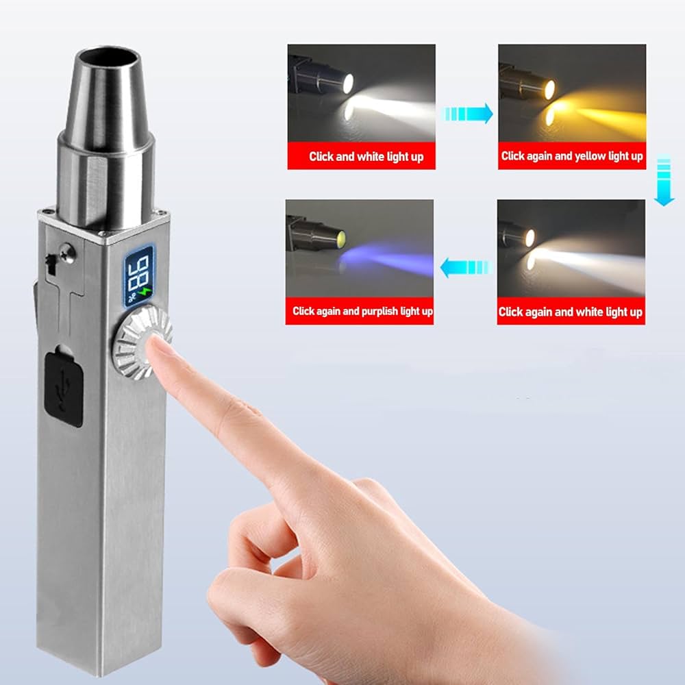 Powerful Identification Flashlight , Brightness , Lithium Battery, Battery Level Indicators, 304 Stainless steel + Aluminum Anodized Alloy Strong Body.